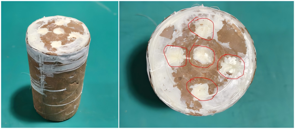钻孔设计:在样品端面开孔,钻取5个适用注浆的孔眼。